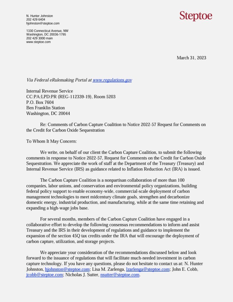 Comments to IRS on Credit for Carbon Oxide Sequestration